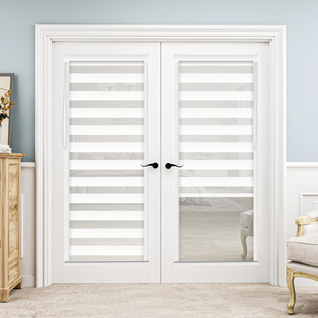 The Smartfit system is designed to be a sleek and compact solution for your window treatment needs. It offers a choice of Zebra and roller shade fabrics, and is equipped with a small aluminum cassette featuring a square profile and side guides. This system is available in an exclusive range of colors and fabric types. The roller blind & zebra blind operates using a chain mechanism with a chain safety guide, and the addition of side channels enhances security, ensuring the blind stays securely in place. One of the standout features of the Smartfit system is its installation process, which requires no screws or drilling. This means no holes will be made, preserving the integrity of your doors and windows. It is particularly recommended for doors. To install, simply remove the strong double-sided foam tape from both the cassette and the side guides, ensure the glass surface is thoroughly cleaned, and affix the system to the flat, small surface of the glass. The design of the Smartfit system is both unique and affordable, making it an ideal choice for smaller doors and windows where drilling holes is not desired. This solution allows you to maintain a consistent